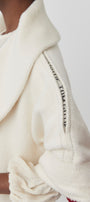 This premium-line coat features the designer’s signature sleeve detailing, elevating the piece with a distinctive artisanal touch.